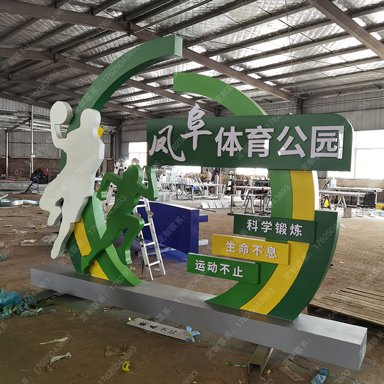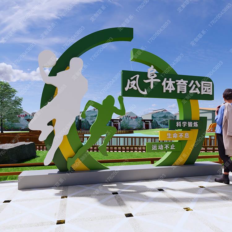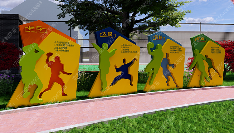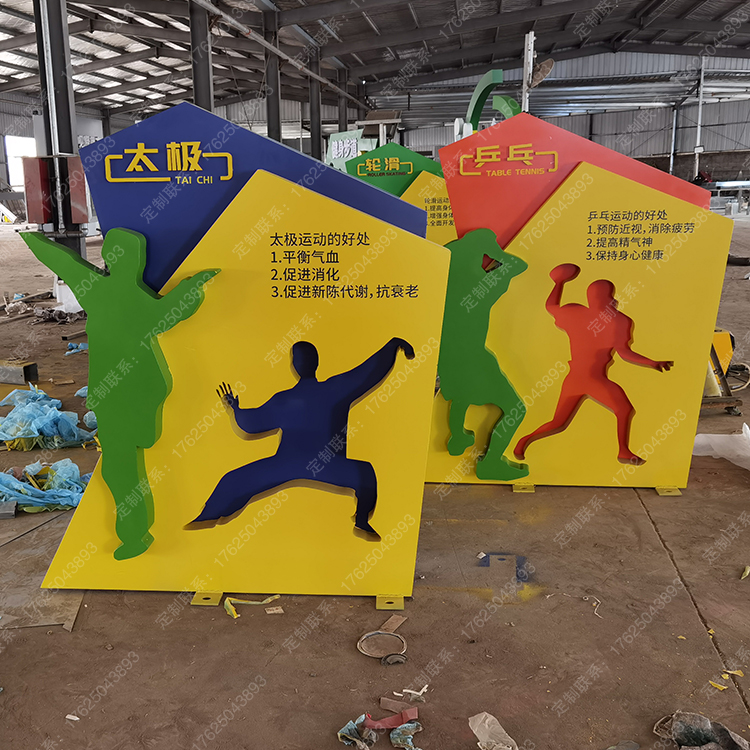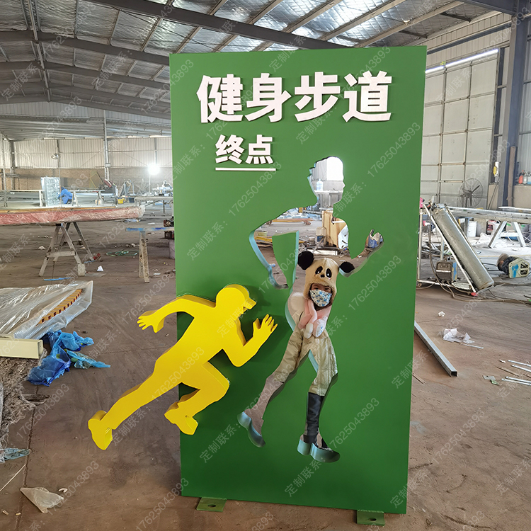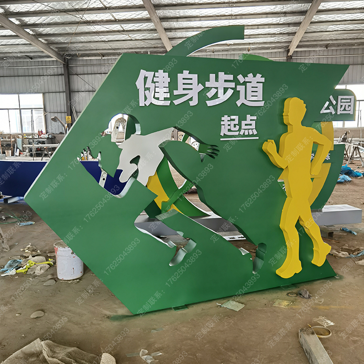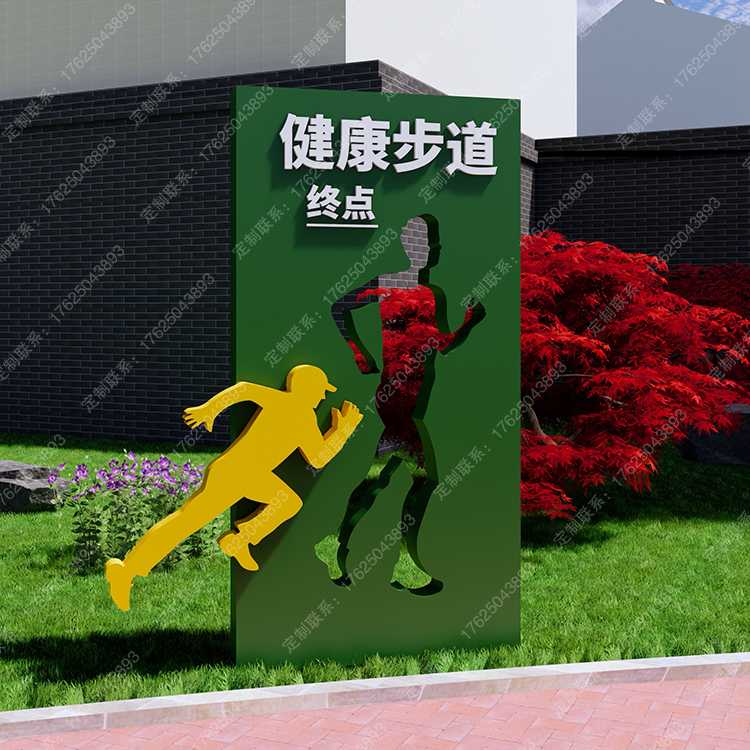 健身步道體育運(yùn)動主題公園廣告牌健康宣傳欄騎行人物標(biāo)識標(biāo)牌