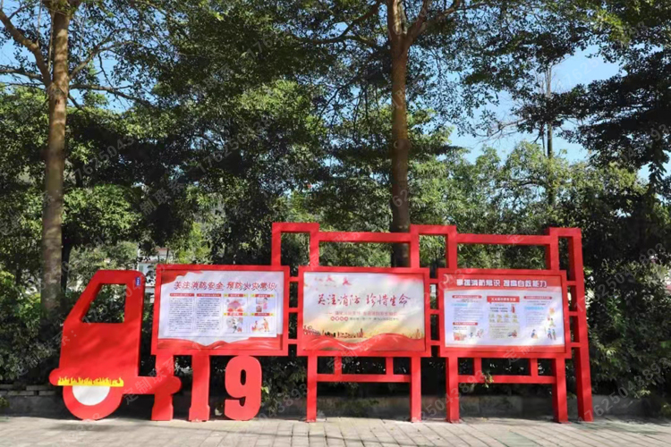 獨特的宣傳欄,圖文并茂,宣傳如何使用消防救援器材和如何逃生的知識。