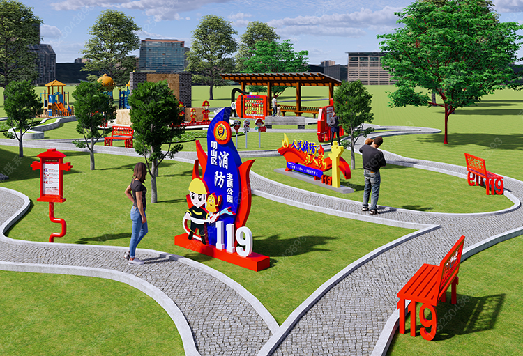 遼寧省本溪市消防主題公園,消防雕塑,消防標示翻版游戲,消防小品,119標識標牌,消防標識標牌,119座椅,消防座椅