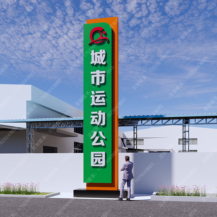 運動主題公園精神堡壘體育健身導向牌不銹鋼指示牌綠色大型廣告牌