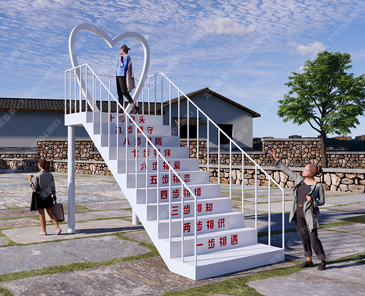 網(wǎng)紅打卡愛心樓梯愛情十步天梯景區(qū)love廣告牌鈑金不銹鋼拍照座椅