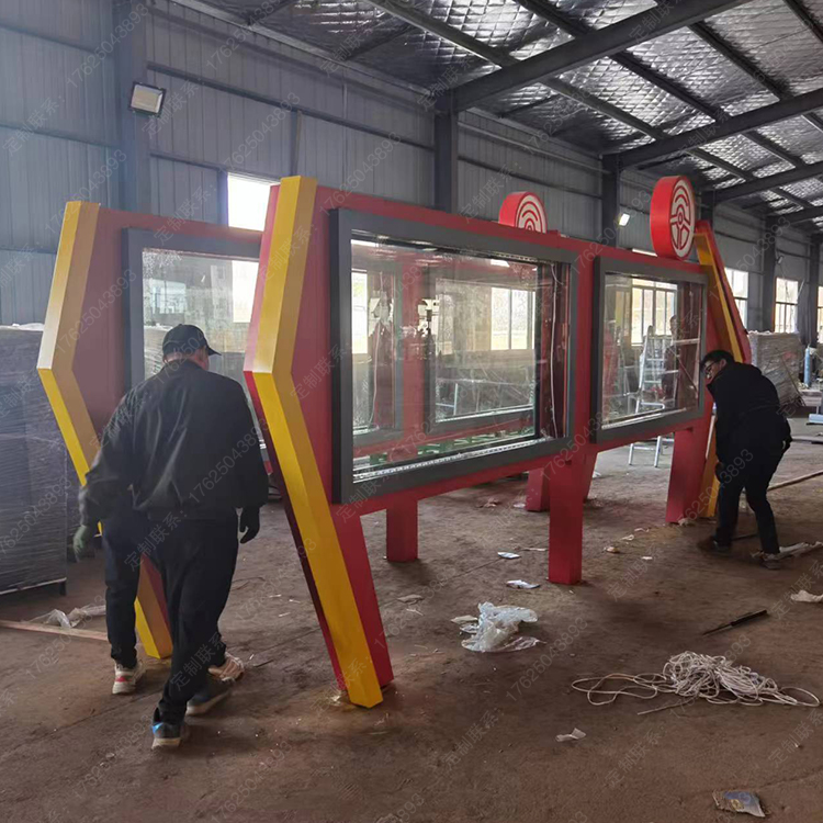異形宣傳欄不銹鋼部隊燈箱紅色造型廣告牌雙面滾動公告欄高檔特色設(shè)計