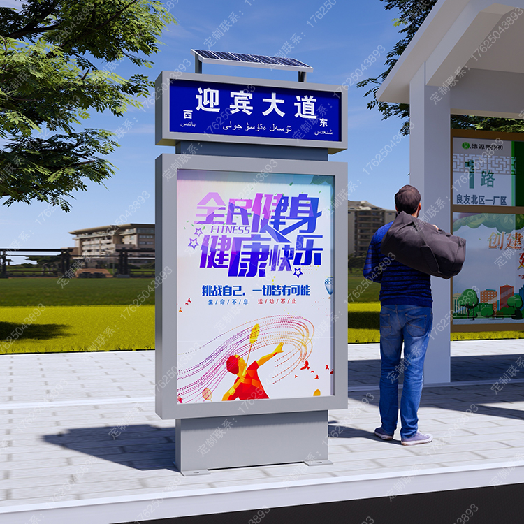 路名燈箱太陽(yáng)能指路廣告牌光伏發(fā)電宣傳欄街道名稱閱報(bào)欄