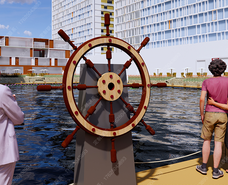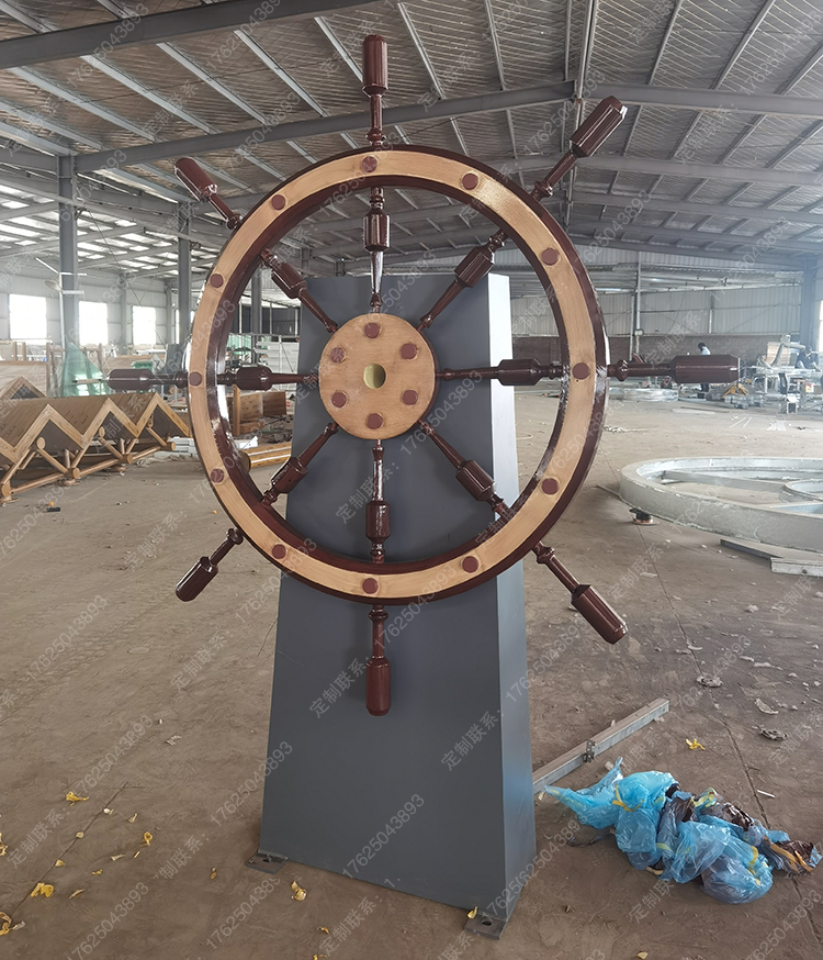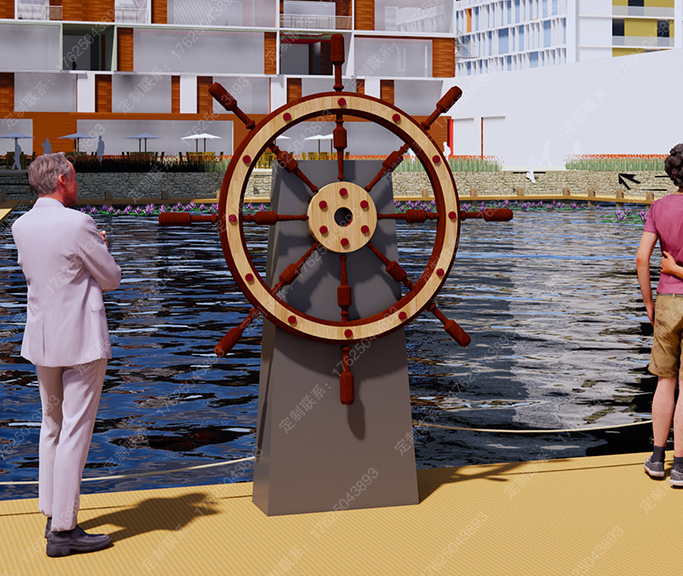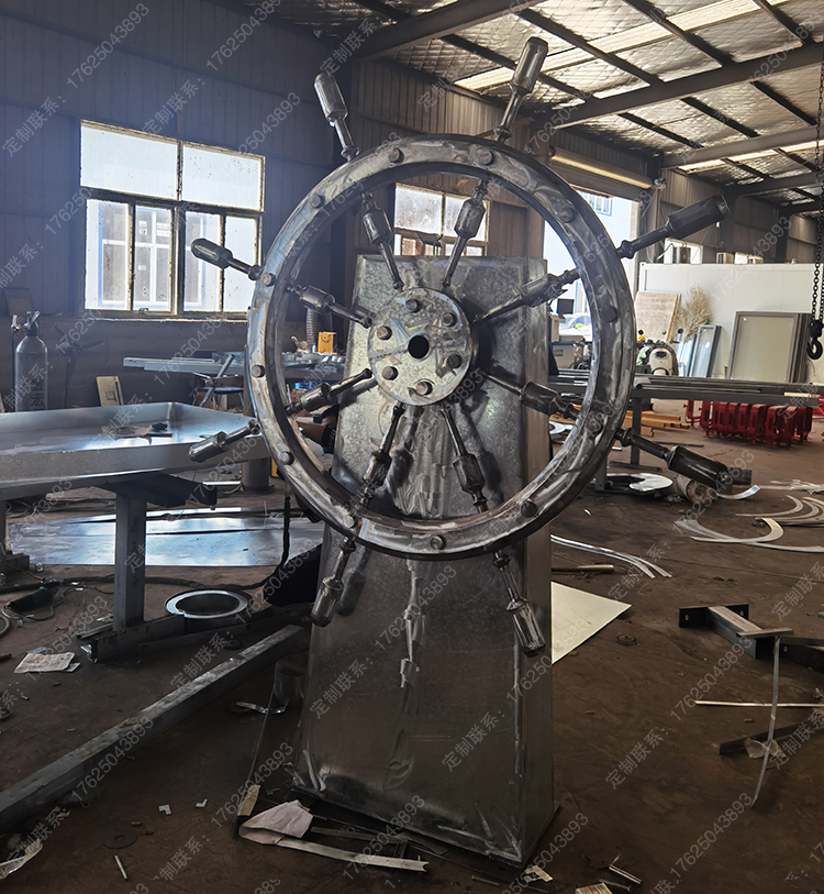 鈑金制作船舵雕塑,可翻轉(zhuǎn)轉(zhuǎn)動,互動道具