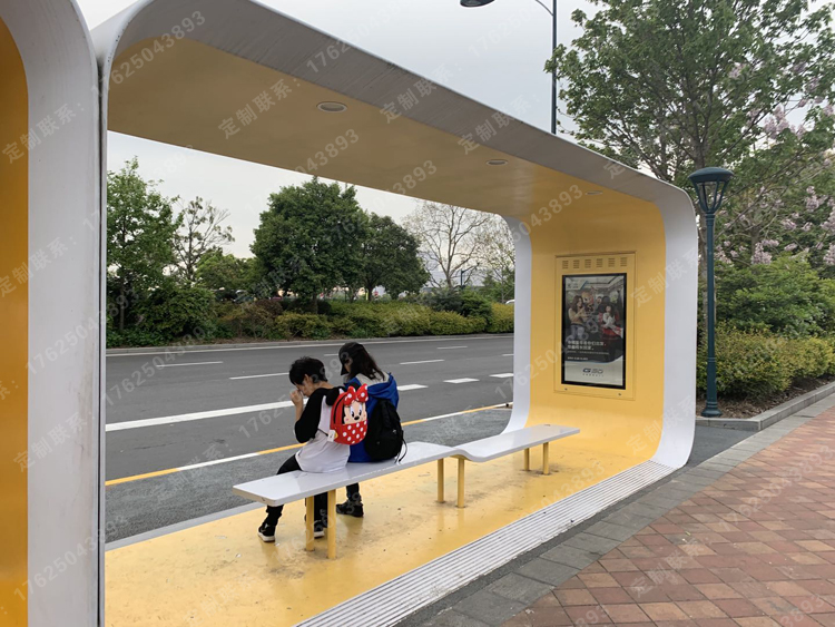 一些個性化設(shè)計的公交候車亭通常采用整體設(shè)計(例如天花板和立柱是一個整體),部件通常需要由工廠定制。