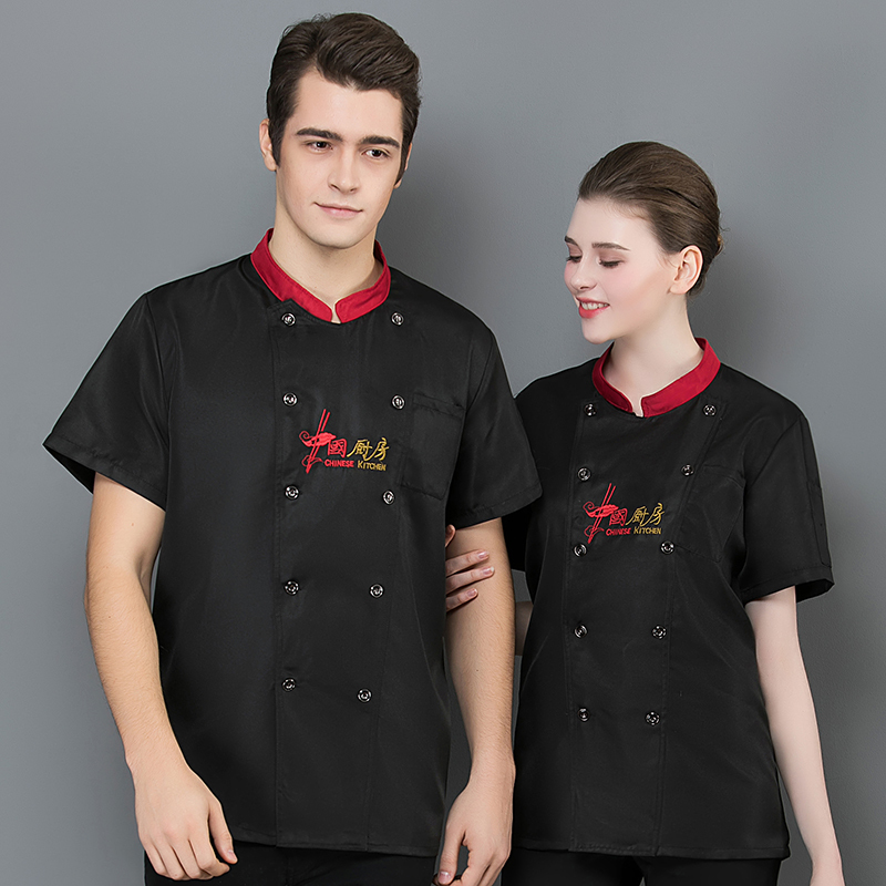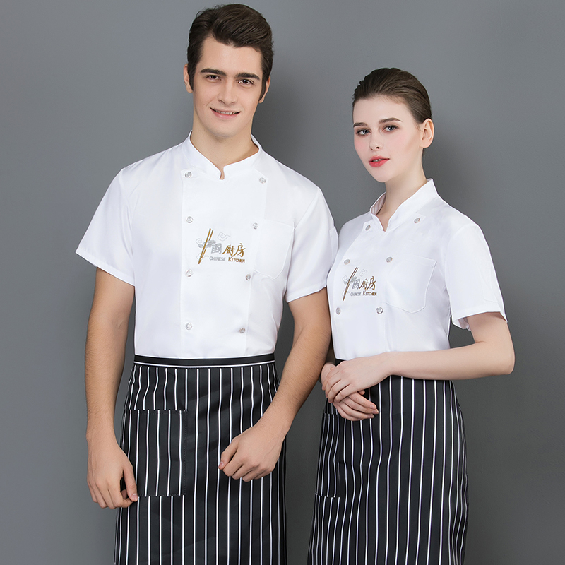 可繡印logo 夏季新款酒店餐廳飯店耐用短袖廚師服 廚師工作服