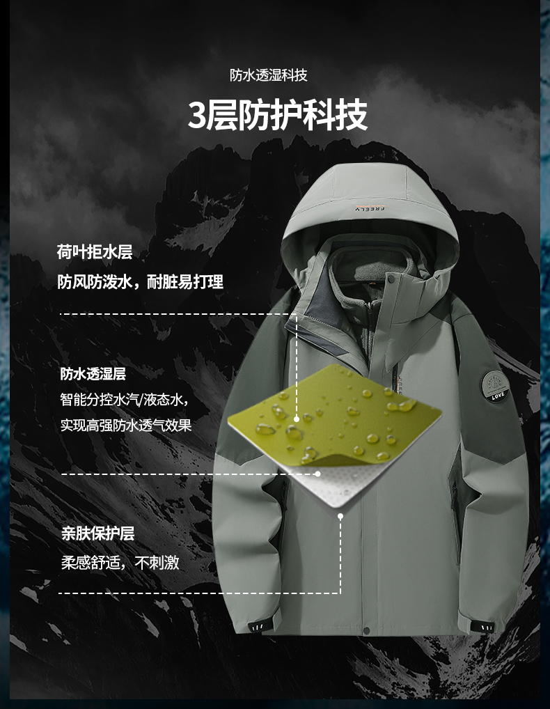 戶外防風(fēng)防水三合一可拆卸加絨厚沖鋒衣V03-2299