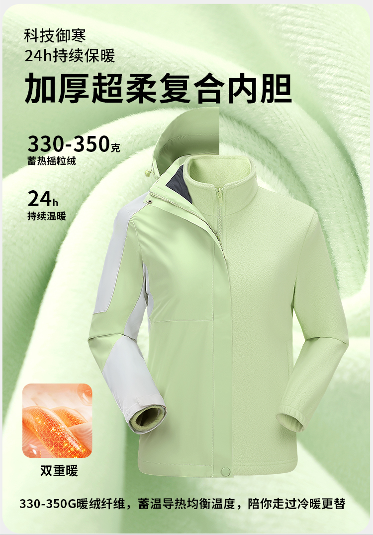 戶外防風(fēng)防水三合一可拆卸加絨厚沖鋒衣V03-2299女款