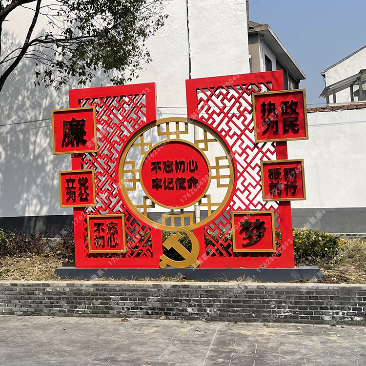 3.黨建標(biāo)志的生產(chǎn)必須安裝牢固,拆卸方便。所有黨建標(biāo)志的安裝部件應(yīng)鍍鋅防腐。后期黨建標(biāo)志的安裝需要與其他措施密切配合,后期不能留下隱患。
